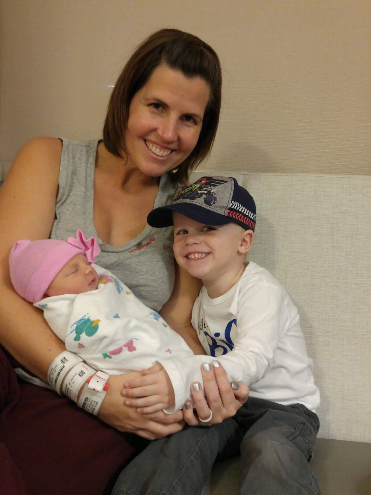 The kids were super excited. This was a fun pregnancy and birth because all of our kids are old enough to get it. They are great helpers and can follow directions around Brynn very well. I loved when they finally made it to the hospital to meet her!